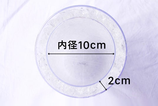 一般的なボトルは直径7~9cm。【IceRock】は上部から底部まで筒状に内径10cmのまま。