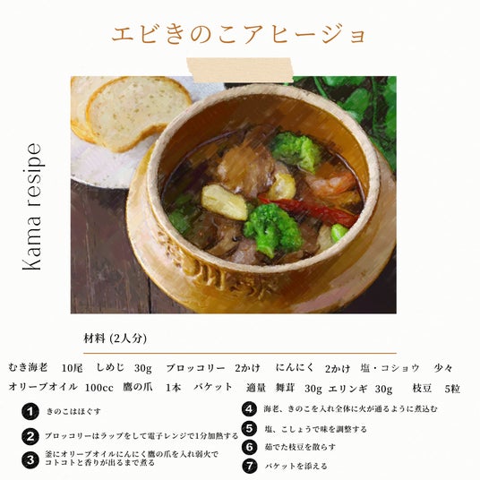 釜に食材を入れて加熱するだけなので、誰でも簡単におしゃれで美味しい一品が作れます。お友達や家族とのホームパーティーにもぴったり。温かいアヒージョを囲んで、心も体もホッとするひとときをお楽しみください。