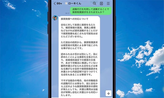 「退職代行ローキ」のAIチャットボット「ローキくん」は、退職を考える人々からの相談に迅速かつ的確に回答し、労働問題に関する質問にも24時間365日対応可能です。