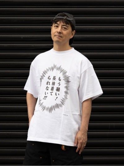 Tシャツは、前面に「もう暑い! 長袖着てられない!!!」というマンガの吹き出し風のセリフがプリントされたインパクト抜群のデザイン。初夏の街で注目を集めること間違いありません。