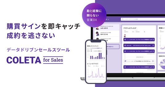 『コレタ for Sales』は、商談後の顧客の購買サインをリアルタイムで把握して、そのデータを元に最適なタイミングで提案できるツールです。