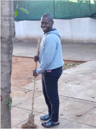 就労支援については2022年に個別療育支援を始めて以来ずっと何かしたいと思っていました。日本のように行政が補助金を出して障害者が働く作業所を運営するというような制度はモザンビークにはありません。障害者の多くは自宅で日々を過ごし、社会的なつながりに乏しい状態です。2024年の2月に幼稚園を開園する際、知的障害のある青年を雇用しました。彼は園庭のそうじや細々とした日々の用事をこなしています。初任給では携帯電話を購入しました。