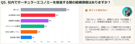 サーキュラーエコノミー推進の組織課題として、以下の2点が上位に挙がりました 。