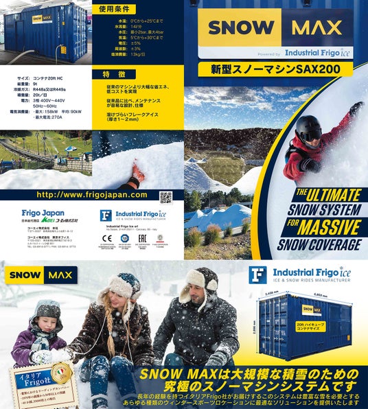 この度コーエィ株式会社(群馬県前橋市)は、50年以上の歴史を持つイタリアIndustrial Frigo Ice社と国内代理店契約を締結し、日本初登場の最新型スノーマシン「SNOW MAX」の販売を開始いたします。