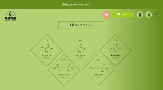 プロテイン入り炭酸飲料「GUTEN」(グーテン)について、紹介および販売を行う公式ページをリニューアルいたしました。