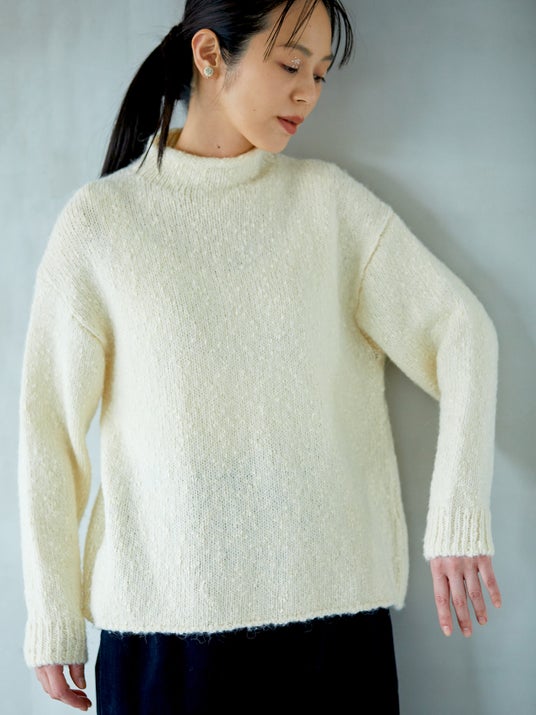 ニット:ファンシーツイードボトルネックプルオーバー ¥17,600