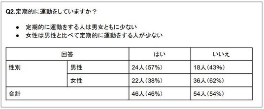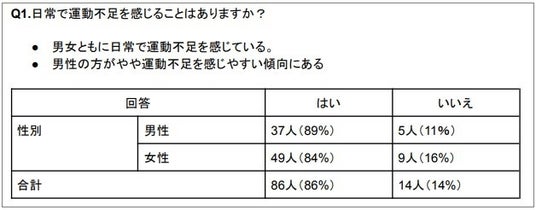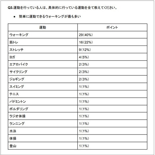運動不足解消に関する調査のサマリは下記のとおりです。