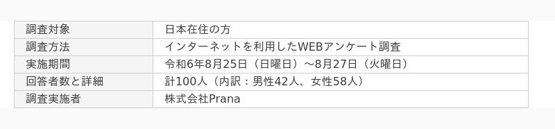 そこで、ヨガとピラティス事業を展開する株式会社Pranaは、2024年8月に日常の運動や運動不足に関する調査を実施いたしました。
