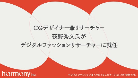 株式会社harmony(本社:東京都港区、代表取締役CEO:原島篤史)において、デジタルファッションの技術と文化を調査、探究するデジタルファッションリサーチャーとして、デジタルファッション領域において豊富な実務経験を持ち、SNSで積極的に発信を行っている荻野秀文氏(通称「f」氏)が就任いたしました。