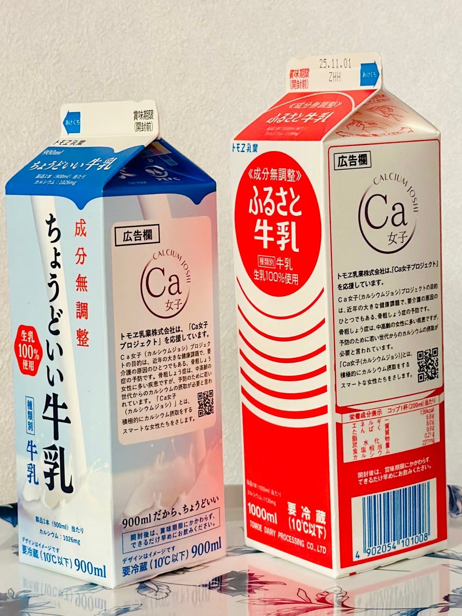 「ちょうどいい牛乳」(写真左)、「ふるさと牛乳」(写真右)