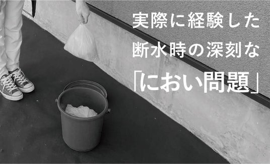 また、集中豪雨の際に断水を経験した時のことです。非常用トイレを準備していなかったため、大きめのビニール袋の上でトイレを済ませ、袋の口を固く結んで屋外の蓋付きポリバケツの中に入れるということを断水が復旧するまで続けました。