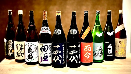 超希少酒の十四代、而今、田酒、信州亀齢、王祿など、豪華ラインナップの日本酒が飲み比べできるプランです。