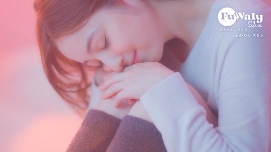 佐々木希さんが、雲の上に寝転びながら「ふわりぃスリム」の心地よさに包まれる姿が、柔らかく幻想的に描かれています。雲に触れているかのような優しい温もりが広がり、佐々木さんの表情にはリラックスと安らぎが溢れています。