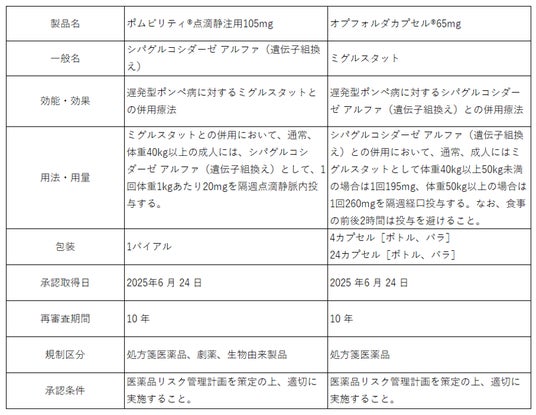 アミカス・セラピューティクス株式会社(本社:東京都千代田区、代表取締役:ジョン・カールソン)は、成人遅発型ポンぺ病を対象とする新規併用療法であるポムビリティ(R)点滴静注用105mg(一般名:シパグルコシダーゼ アルファ(遺伝子組換え)、以下「ポムビリティ」)ならびにオプフォルダ(R)カプセル65mg (一般名:ミグルスタット、以下「オプフォルダ」)の製造販売承認を2025年6月24日付で取得したことをお知らせします。