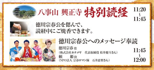 協力:NPO法人 宗春ロマン隊、八事山興正寺 協賛:合資会社 八丁味噌、株式会社 両口屋是清