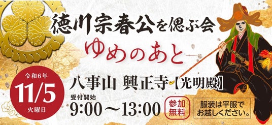 株式会社西田葬儀社(本社:名古屋市昭和区、代表取締役:西田栄一)は、2024年11月5日(火)、八事山興正寺にて「NPO法人 宗春ロマン隊」と協力し、「徳川宗春公を偲ぶ会 ~ゆめのあと~」を開催いたします。このイベントは、徳川宗春の功績や名古屋に遺された文化的遺産を振り返り、参加者の皆様にその偉大な生涯を偲んでいただく趣旨で実施されます。