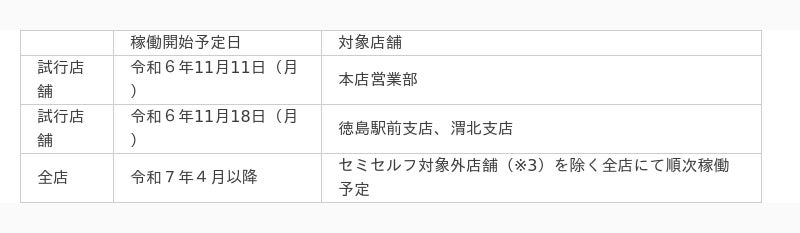 トモニホールディングスグループの徳島大正銀行(徳島市富田浜1丁目、頭取:板東 豊彦)は、お客さまへの更なる価値提供を目的に、お客さまの利便性向上を実現する新営業店システム(セミセルフ)を導入しますので、下記のとおりお知らせいたします。なお、窓口の金融専用端末を活用したセミセルフ方式は新たな取組みであり、当行及び株式会社日立製作所が共同で検討を進めてまいりました。