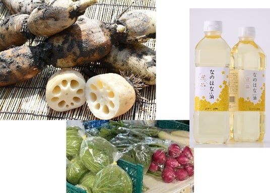 全国でも有数の生産量を誇る「れんこん」や各種新鮮野菜、西尾抹茶、米粉ミニクレープ、醤油味付けメンマ、味のり、はちみつ、なのはな油、守口漬など、魅力的な商品が盛りだくさん!