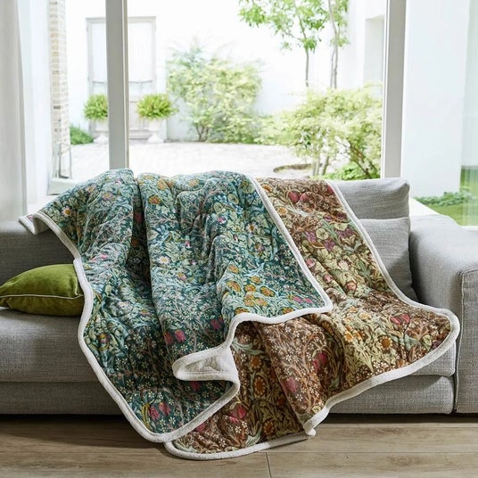 【MORRIS Gallery】キルトケット(ベージュ/グリーン) 8,800円