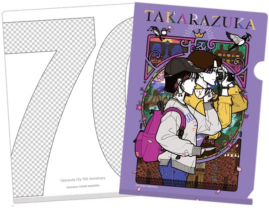 第1段は「宝塚市制70周年描き下ろしイラスト」を使用した限定オリジナルA5クリアファイルです。