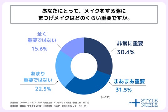 年末年始のイベントシーズンが目前に迫り、冬ならではのファッションやメイクを楽しまれる方も多いことでしょう。年末年始は人と会う機会も多く、外出時のメイクにも一層こだわりが高まる季節です。また、普段重点的にメイクするパーツといえば「アイメイク」と答える女性も多いものと思われます。中でも、目元の華やかさを決定づける重要な要素として「まつげメイク」が挙げられますが、現代の女性たちはどのような「まつげメイク」を行っているのでしょうか。そこで、ノーブル株式会社は、普段メイクをする20代~40代女性を対象に「まつげメイク」に関する実態調査を実施しました。