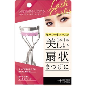 ノーブルが提供する「セパレートコームラッシュカーラー」は、まつげをカールする際にセパレートコームがまつげの隙間に入り、とかすことにより、美しくセパレートした扇状のまつげを形成します。
