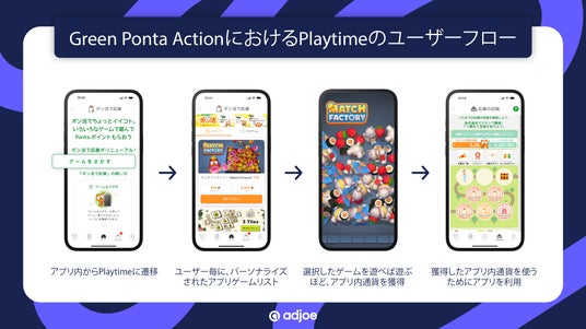 モバイルアプリ広告プラットフォームを提供するadjoe GmbH(本社:ドイツ、ハンブルク 代表:Jonas Thiemann)は共通ポイントサービス「Ponta」の関連アプリ「Green Ponta Action」においてアプリ内広告マネタイズソリューション「Playtime」を導入いただきました。その効果を報告します。