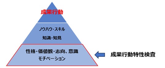 一般的に適性検査は能力やスキルに焦点を当て、業種や職種または職場の適性を総合的に測定するのに対して、本コンテンツは“成果行動“に特化し、行動の源泉となる性格や価値観、志向・意識、モチベーションなど個人の内面的な特性を測定します。