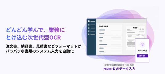 その第一弾として "どんどん学んで業務にとけ込む次世代型のOCR"「route-D AIデータ入力」を2025年にローンチし、既に50社以上との取り組みが進捗しております。また導入企業では、これまで人間が実施してきた入力業務の工数を90%削減し、人間は人間にしかできないコア業務に専念することができています。