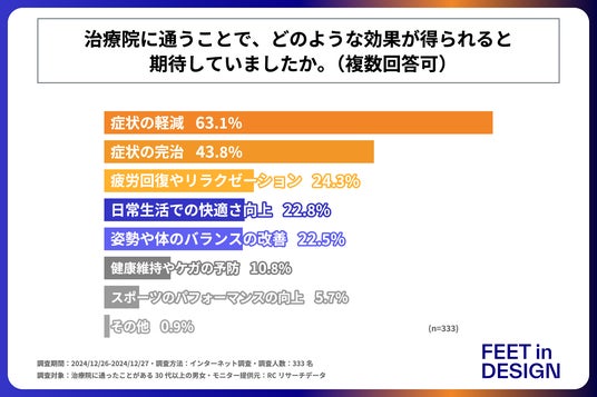 治療院に通うことで期待する効果のトップ3は「症状の軽減」「症状の完治」「疲労回復やリラクゼーション」