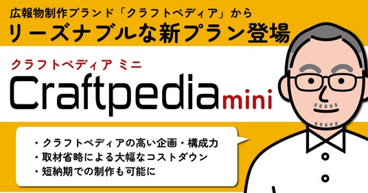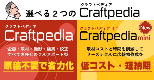 「クラフトペディア mini」は、「クラフトペディア」の企画・構成力はそのままに、お手持ちの写真やテキストを活かして取材工程を省略。これにより、納期の短縮と大幅なコスト削減を実現した新プランです。