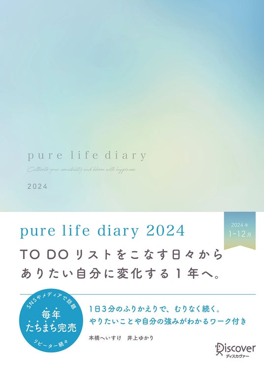 pure life diary は、「自己管理しようとつい自分に厳しくなってしまう「まじめながんばり屋さん」が、本来の自分の気持ちに気づき大切にしながら、ありたい自分・なりたい自分を描き、日々意識を向けて行動していくための手帳です。」を「まじめながんばりやさんが感性をみがいて自分にやさしくなれる手帳です。
