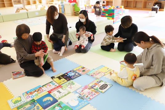 絵本を手に取り、読み聞かせを始める保護者の皆さん