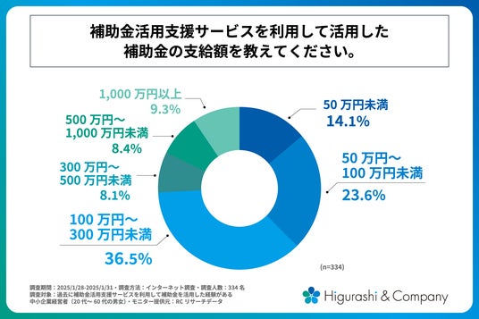 補助金支援サービスを利用して活用した補助金の支給額が300万円以上の中小企業も約3割いる