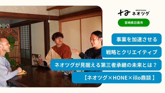 ネオツグ代表の宮谷、マーケティングを担当するHONE代表の桜井氏、クリエイティブと本記事の進行を務めるillo代表の小宮氏にて鼎談(ていだん)を実施。立ち上げ経緯から今後の展望などについて語りました。