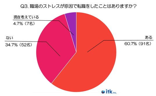 調査結果3. 職場のストレスが原因で転職をしたことはありますか?