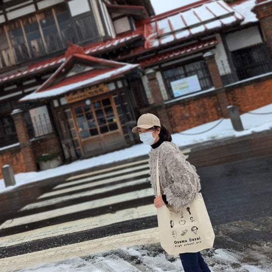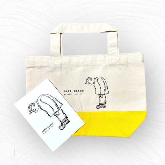 第一弾は、太宰治が描いた中で一番人気のイラストをアイコンにしたミニツートントートです!