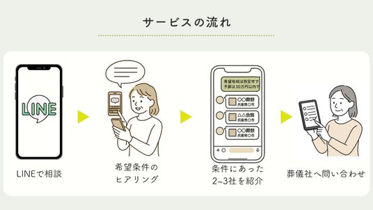 LINEを通じて条件を入力するだけで、地域や予算に合った信頼できる葬儀社を2~3社ご紹介。