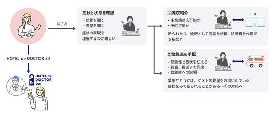 従来、訪日外国人の体調不良時には、フロントスタッフが症状を聞き取り、病院の手配や救急車の手続きに多くの負担がかかっていました。「HOTEL de DOCTOR 24」を導入することで、これらの負担を大幅に軽減できます。今後は宿泊施設だけでなく、鉄道会社や航空会社、地方公共団体とも協業し、観光のあらゆるタッチポイントで提供することを目指します。