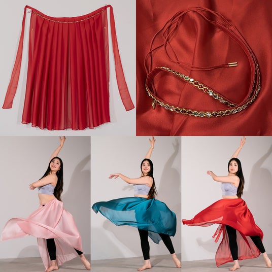 衣装のスカートを効果的に使うテクニックを練習するための巻きスカートです。光沢があり、空気をつかむとても軽い生地なので、つまんだりターンするとふわっとしてテンションも上がります。ミラーやストーンが付いたおしゃれベルトも付いてきます。ベルトは付け外しが可能なため、スカートだけ洗うことが可能です。ベルトは他のレッスン着とコーディネートしても使用いただけます。