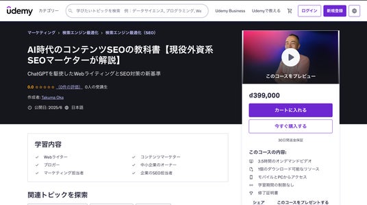 SEO歴9年の現役マーケター・岡 拓馬(Oka Takuma)氏が、AI時代に最適化されたコンテンツSEO戦略をわかりやすく解説するオンライン講座『AI時代のコンテンツSEOの教科書』を、オンライン学習プラットフォームUdemyにて公開しました。