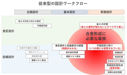 設計業務を進めることができ、後工程での手戻りによる修正や省エネ計算の再計算作業などを大幅に削減することが可能になります。