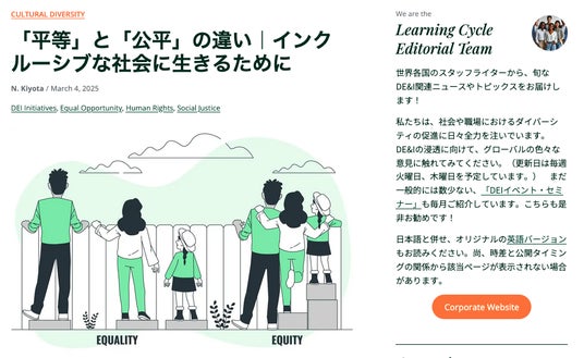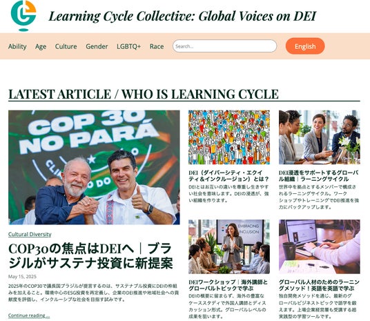 ラーニングサイクルは、北米・南米・アジア・ヨーロッパ・アフリカなど、世界各地に拠点を持つメンバーで構成されたグローバルスタートアップです。DEI(多様性・公平性・包括性)に特化したメディア「Learning Cycle Collective: Global Voices on DEI」を運営し、世界各国のDEI関連ニュースやトピックを発信しています。また、この多様なメンバーとグローバルな知見を活かし、組織内でのDEIマインド浸透を目的とした「DEI研修ワークショップ」や「ラウンドテーブル」を法人向けに提供しています。