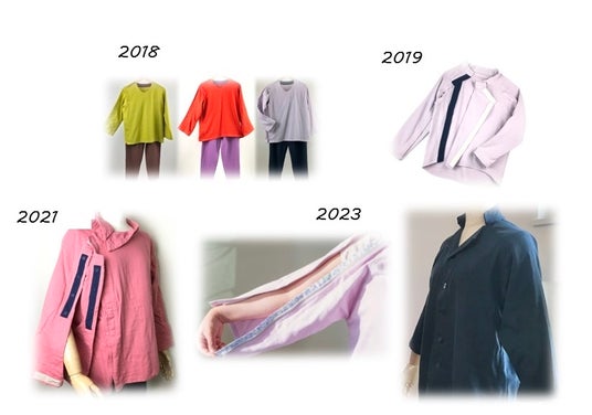 『キルキセキ』は袖の開閉や身頃の留め具を選択できることで、介護が不要な元気な時から介護度の高い状態まで、一つの服を作り変えながら対応できる設計になっています。介護度や生活環境が変わった場合も、新たに服を買い替える必要がありません。