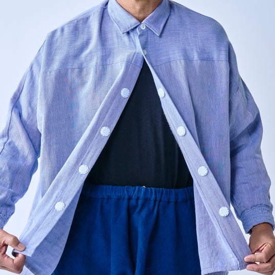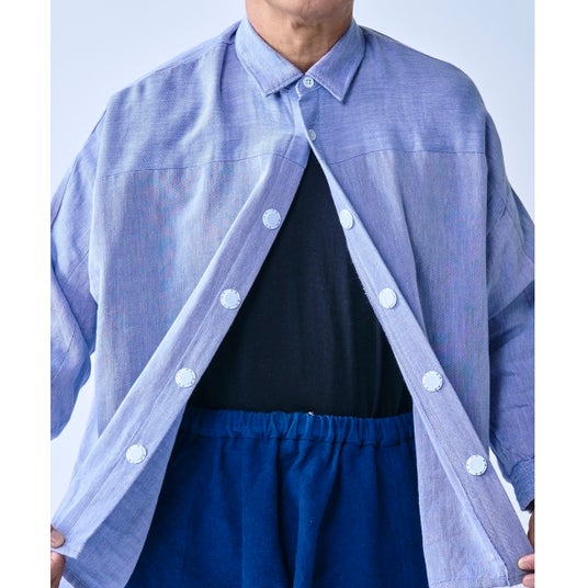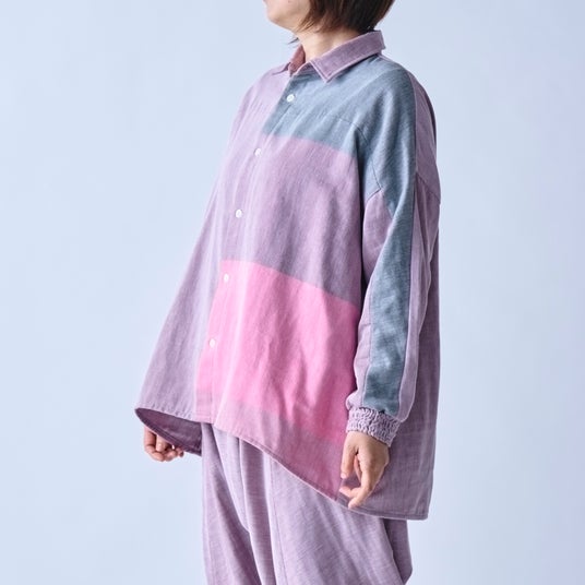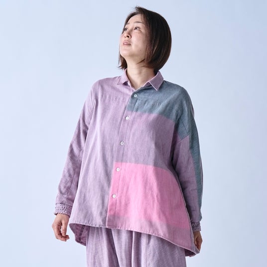 その生地の風合いは変えずに、新たに色糸と白糸を組み合わせたシャンブレー生地を織り上げました。また、ダブルガーゼでは前例のない光沢加工処理を試み、さらにファッション性を向上しました。