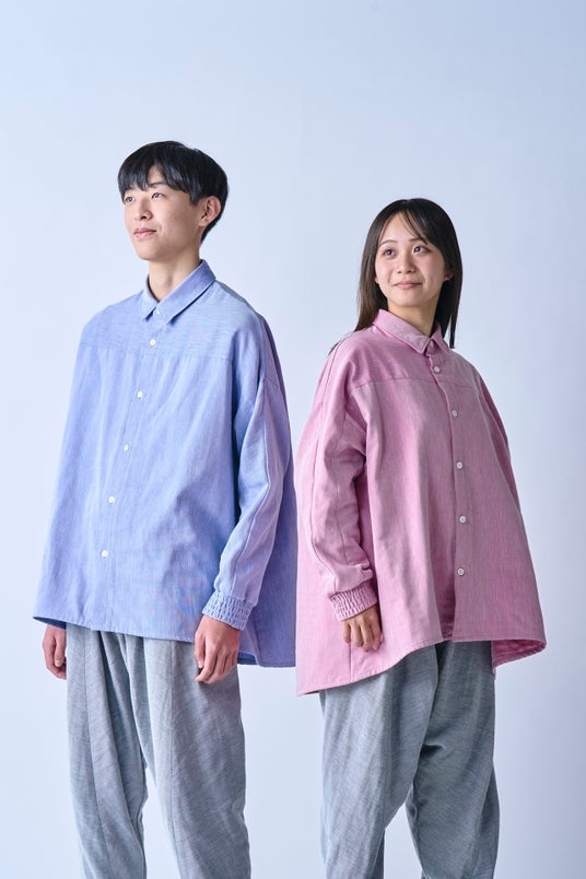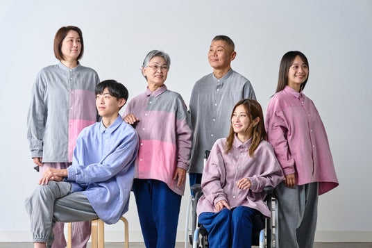 年齢・性別・体型や障がいの有無を問わず誰もが着られるデザインと、留め具などを選択できる柔軟性を備え、自社開発のガーゼ生地で提供。令和7年2月21日に発表会を開催し、今春より販売開始。