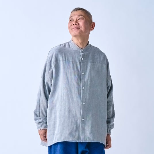 ・バンドカラーシャツ:グラデーション・ライトグレー