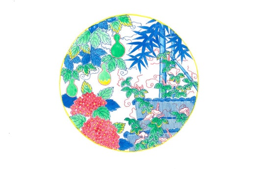 「鍋島藩窯 風鈴市」では、夏を彩るモチーフとして「朝顔」「紫陽花」「瓢箪」「笹」が描かれた絵皿を販売。メインモチーフの「柴垣朝顔文」は、支柱にしっかりとツルを絡ませることから「固い絆」、そして「愛情」といった意味が込められています。