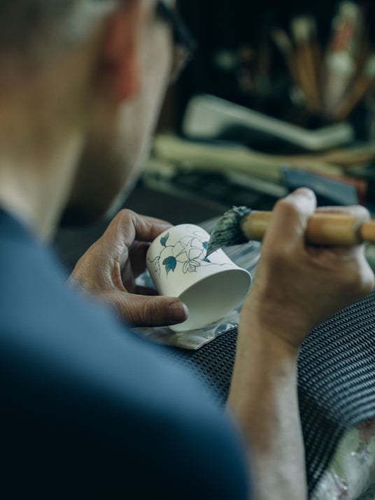佐賀県伊万里市の「大川内山(おおかわちやま)」でつくられる日本の伝統的工芸品。江戸時代、佐賀鍋島藩によって全国から選りすぐられた31名の陶工が、大川内山に集められ、官営の御用窯である「鍋島藩窯(なべしまはんよう)」が築かれました。その精巧な技術と鮮やかなデザインから「日本最高峰の磁器」と称され、廃藩置県までの200年、以降の150年、そして民窯となった今日まで、伝統と技術が受け継がれ続けています。