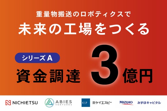 自動金型交換装置など重量物搬送ロボティクス・スタ-トアップのニチエツ株式会社(本社:横浜市、代表:中村 高志、以下ニチエツ)は、この度、Abies Ventures株式会社が運用するAbies Ventures Fund II投資事業有限責任組合、株式会社ケイエスピーが運用するNextG投資事業有限責任組合、みずほキャピタル株式会社が運用するみずほ成長支援第5 号投資事業有限責任組合を引受先とする第三者割当増資を実施し、総額3億円の資金調達を行ったことをお知らせします。
